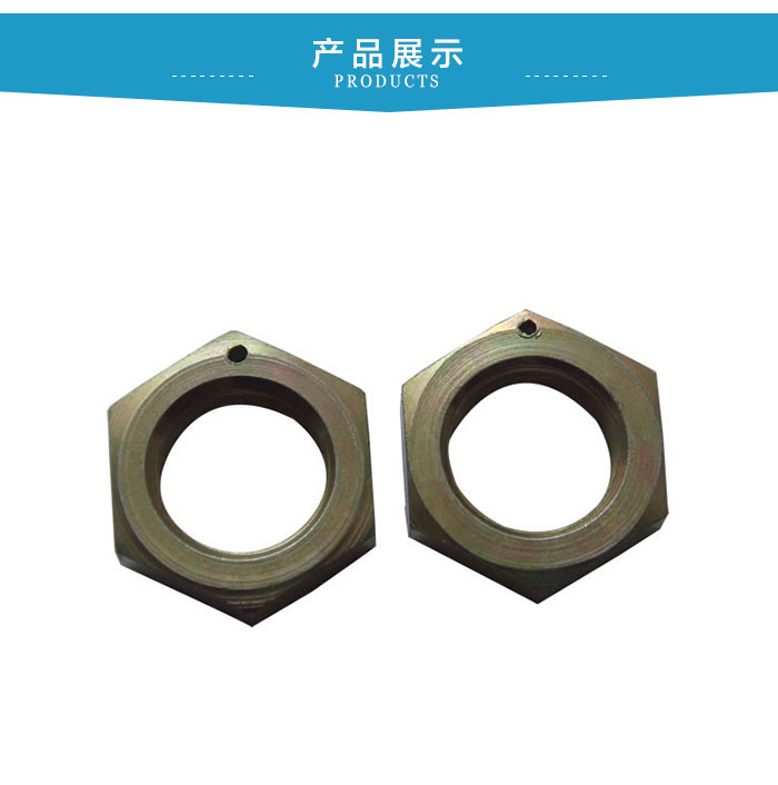 六角鑽孔螺母與螺栓、螺釘配合使用,起連接緊固機件作用。其中經1型六用螺母應用z廣,C級螺母用於表麵比較粗糙、對精度要求不高的機器、設備或結構上;A級和B級螺母用於表麵比較光潔、對精度要求較高的機器、設備或結構上。2型六角鑽孔螺母的厚度M較厚,多用於常經常需要裝拆的場合。